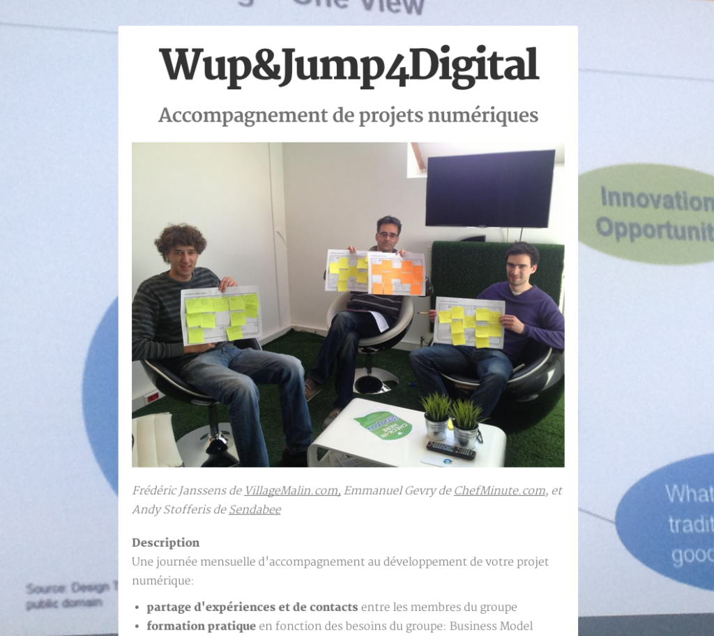 Mission : mentoring mensuel pour les entrepreneurs dans le web, animations de networking entre ses membres
